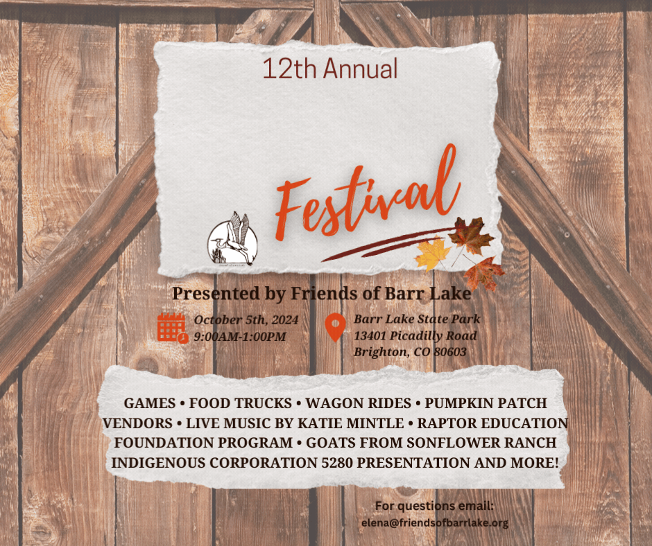 Celebrate fall with a fun-filled day at the Friends of Barr Lake’s Harvest Festival, happening on Saturday, October 5th, 2024 from 9 AM to 1 PM at Barr Lake State Park!